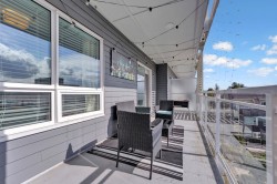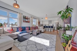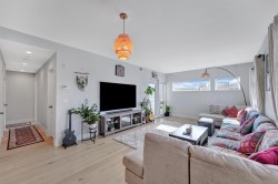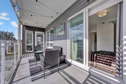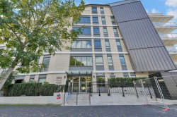 This 2-beds, 2-baths home features an open-concept layout with high ceilings, engineered hardwood, and A/C. The kitchen offers Italian-inspired cabinetry, stainless steel appliances, gas cooktop/convection oven, large island, and quartz countertops. The primary suite includes a 5-piece ensuite and walk-in closet with custom shelving. Includes separate storage and private parking with 220 Volt PLug for EV charging (EV charging fees-$35/month). Steps from shopping, dining, transit, and a 20-min walk to West Coast Express