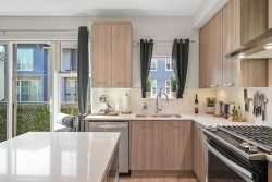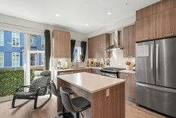 This beautifully designed 4Bdrm/4Bth home backs onto the tranquil Siegel Creek greenbelt, offering exceptional privacy & serene nature views. The bright, open-concept layout features large windows that fill the home w/natural light. Step outside to your east-facing backyard w/spacious deck & gas BBQ hookup—perfect for summer entertaining. The modern kitchen is equipped with SS appliances, a gas stove, built-in microwave & large island w/breakfast bar seating. Spacious Primary includes walk-in closet & luxurious ensuite w/double vanity & frameless glass shower. Enjoy access to lush green space, scenic walking paths, children’s play area & community amenity room. A perfect blend of nature & everyday convenience!