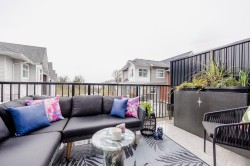 Step into this exquisite 2 bedroom townhome which can easily be converted back into a 3 bedroom, upgraded by an award-winning designer. This residence features a meticulously curated interior with open-concept elegance, AC & high-end finishes. The gourmet kitchen offers bespoke cabinetry, luxury plumbing fixtures, a large island, & premium appliances, flowing into refined living & dining areas where unobstructed views of Mission valley & Mt Baker create a stunning backdrop for intimate gatherings & sophisticated entertaining. Upstairs, the serene primary suite boasts a spa-inspired ensuite & walk-in closet. The lower-level flex space & private fenced yard adds functionality and you are mere minutes from parks, trails, top schools, & Mission’s best amenities.