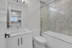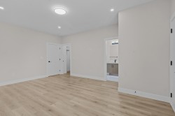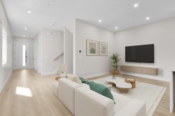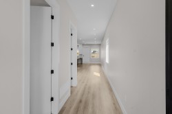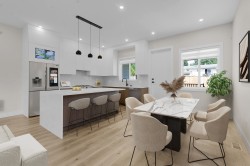 This impressive and brand new 3-storey half duplex offers 6 bedrooms and 5 bathrooms, designed for both comfort and functionality. The home boasts a soaring high 10 ft ceiling on the main floor, creating an open and airy feel throughout. Set on a desirable corner lot, this property offers exceptional curb appeal along with a spacious driveway and ample parking. Each bedroom has access to a balcony, adding a unique touch of outdoor living. Comes with a 2-bedroom legal suite with a private entry, dedicated central air conditioning, and in-suite laundry, providing an excellent mortgage helper or ideal accommodation for extended family. A rare opportunity to own a home that perfectly blends modern comfort, convenience, and income potential.
