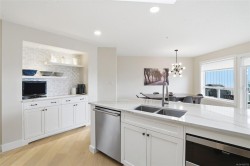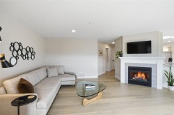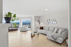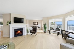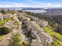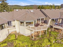 If you're searching for a beautiful "like new" home with Panoramic Views, this may be the one. This gorgeous 2 bedroom & den townhome has been totally updated with modern elements such as white oak engineered hardwood floors, quartz countertops, new cupboards & appliances new doors & lighting & Hunter Douglas blinds.. The main living area is bright & open enjoying natural light from skylights & big windows & features a natural gas fireplace. The master bedroom has a sitting area, huge walk in closet, luxurious 5 pc ensuite with soaker tub & separate shower, heated tile floors, plus motion activated undercabinet lighting plus a private covered sundeck. Guest bedroom & full bath & lots of storage on lower level.New gas furnace & hot water tank.This desirable adult 55+ townhome is in Departure Bay's Edgewood Estates & is minutes from shopping, parks, the beach & ferries. The captivating southern exposed views of the bay, golf course & Mt Benson are what dreams are made of. Pet Friendly