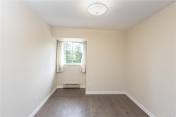 Top-floor 2-bed, 2-bath condo in prime North Nanaimo—early possession available! This bright, well-maintained unit overlooks Pioneer Park and features new flooring, fresh paint, tiled areas, extra shelving and offers great privacy with bedrooms and bathrooms on opposite sides of the open-concept living/dining area. Enjoy the updated kitchen, in-suite laundry with full-size w /d , and a private covered balcony. New windows and patio door are scheduled for upgrade this summer. Steps from a bus stop and walking distance to the popular Woodgrove Mall, shops, Costco, library and beach access. Also, same-floor storage locker with custom shelving, assigned parking and air-exchange in the common hallways. Pet free and no age or rental restrictions - Well managed building offers great value for first-time buyers, investors, or downsizers!