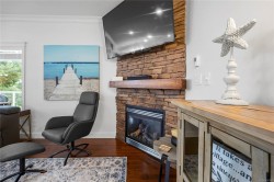 Exquisite Coastal Home! Experience refined West Coast living in this stunning Nanaimo residence, ideally located within walking distance to top-rated schools, city parks, and the world-famous Neck Point and Piper’s Lagoon. Enjoy morning coffee on the welcoming front patio or entertain on two expansive rear decks with ocean views. Inside, a grand foyer with a tranquil water feature opens to an elegant, open-concept living area with a gas fireplace. The designer kitchen and spacious dining area are perfect for gatherings. The luxurious primary suite features a private fireplace, walk-in closet, and spa-inspired ensuite, complemented by two additional bedrooms and a full bath. Downstairs offers a large family room and adjoining media room, while the low maintenance backyard provides access to standing room heated storage on the third level. A fully self-contained one-bedroom suite adds flexibility for guests or income potential. Timeless design, modern luxury, define this remarkable home.