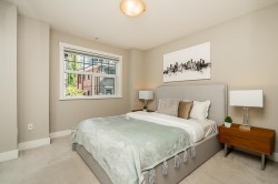 Discover urban living at its finest in this well kept end-unit townhome in the boutique Brickstone Walk collection. Heritage-inspired, this home features an open living space and an oversized chef's kitchen, perfect for entertaining. The spacious den can easily be converted into a third bedroom or used as an office. Enjoy the tranquility of a quiet, beautifully landscaped courtyard in a secure, gated complex. With two bedrooms, two full baths upstairs, a powder room on the main floor, and two large patios, this home offers ample space and comfort. Centrally located in the vibrant downtown New Westminster, you’re just steps from the Skytrain and a short stroll to the Waterfront Quay, artisan markets, top restaurants, parks, schools, and more. Open house by appointment