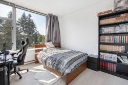 Welcome to The Carlyle! This luxury 2-bedroom, 2-bathroom corner unit features an open floor plan, perfect for entertaining. Floor-to-ceiling windows provide abundant natural light and breathtaking 180-degree panoramic views of Queen's Park and the Fraser River. Situated on Victoria Hill, this pet-friendly building offers a blend of convenience and sophistication. Amenities include a fitness gym, guest suites, meeting rooms, and a recreation room. The location is ideal for leisurely walks to Queen's Park, transit, and your favourite shops and restaurants, providing an unparalleled living experience. OPEN HOUSE Feb 14/15 2-4PM