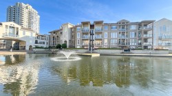 Welcome to Rialto at the Quay, just steps from the Boardwalk & all that the Quay offers. This rarely available grd floor, 2-bed, 2-bath townhouse-style home features a private entrance, 1,158 sqft of bright living space, & a 96 sqft covered patio overlooking a landscaped courtyard & lagoon. The home has been extensively updated with new flooring, paint, a fully renovated kitchen and bathrooms, updated doors, trim, and hardware. A structurally approved kitchen cut-out improves flow & light. Additional features include shiplap accents, blackout blinds, added Ethernet, patio pavers, & a dedicated laundry room. Includes gas fireplace, ensuite, 1 parking, storage locker, and ample in-suite storage, in a quiet, pet-friendly community close to SkyTrain, & River Market & Quay amenities.