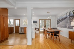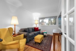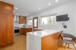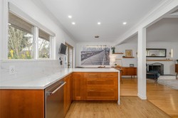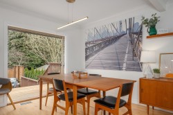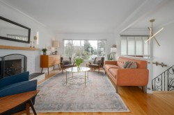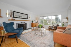 Mid-century gem in New Westminster's sought-after Massey Heights neighbourhood located on one of the best blocks in the city. Featuring more than 2300 sf of living space over two levels w/ 4 BDRMS (could be five) + 2 full baths, this meticulously maintained home boasts an open concept main living space with seamless access between the living room, dining room and kitchen. The cook in the family will love the well-equipped kitchen with ss appliances + peninsula island w/ waterfall edge. Features incl: AC, custom built-ins, newer furnace, roof, gutters, windows, h/w tank, hardwood floors, 2 f/p and more. Enjoy the tiered deck overlooking the backyard w/ prof landscaping. Within walking distance of city's newest school & parks. Aquatic and Community Centre. OPEN HOUSE: Dec 21, 1-3pm!