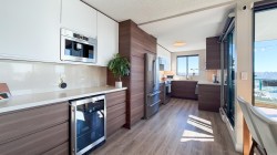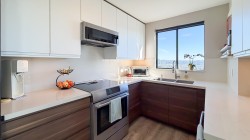 Welcome to this Beautifully Renovated residence w/nearly 1,200 sqft. living space in Downtown New West! This residence offering stunning WATER, MOUNTAIN & CITY VIEWS. Designed with quality and style in mind, it features a modern kitchen with quartz countertops, sleek cabinetry, and a built-in coffee machine - perfect for your morning espresso. The spa-inspired bathroom is w/ premium fixtures & matching quartz surfaces. Relax by the gas fireplace that warms the entire space in Winter. Every corner reflects high-quality craftsmanship, thoughtful storage solutions, and the owner's exceptional care. W/ direct access to the SkyTrain station, you're steps away from shops, restaurants, schools and the riverfront. Truly a "show home" experience - move in and enjoy modern luxury and convenience!