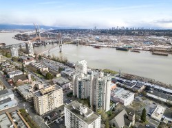 SPACIOUS, BRIGHT & FULL OF POTENTIAL! Main living space offers plenty of options for LARGE SIZED FURNITURE configurations, a GAS FIREPLACE, a COZY NOOK that makes for a perfect reading area or HOME OFFICE, a kitchen with a window overlooking the river, & a SPACIOUS BALCONY, the perfect place to enjoy BREATHTAKING RIVER VIEWS over your morning cup of coffee or evening glass of wine. Two large bedrooms offer plenty of space for dressers, chests, or a desk, & each room offers peak-a-boo views of the river. Carnarvon Place offers great amenities, including an INDOOR POOL, HOT TUB, SAUNA, and GYM. Building offers DIRECT ACCESS to Columbia SKYTRAIN STN from the parkade, connecting you to DOWNTOWN VANCOUVER in less than 30min. Comes w/ 1 PARKING, 2 PETS & RENTALS allowed. OPEN: Sat Dec 20, 2-4pm