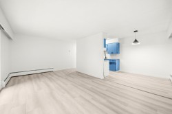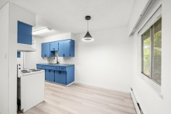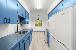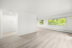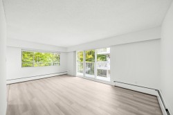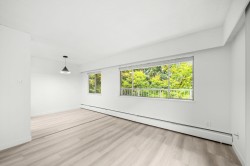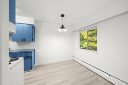Beautifully renovated 2 bed 2 bath 884 sf Corner Unit on a quiet street in a fantastic location in Uptown New West! Steps to shopping, restaurants, cafes & amenities on 6th St. Just a short walk to schools, Moody park & Queens Park, & easy access to transit. North East corner unit with a great floorplan, large living space & tons of natural light featuring wide plank laminate flooring, refinished kitchen cabinetry, updated bathrooms, 2 good sized bedrooms & a wrap around patio! Building has an indoor pool! 1 cat or dog allowed (max 25lbs).