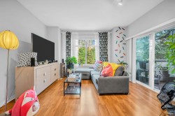 Welcome to Residences on the River, a beautifully designed garden-level 2-bed, 2-bath home just steps from the water. This residence features two separated bedrooms. Off the living room, enjoy your private patio — partly covered for year-round use and partly open to welcome the sunshine. Located in the heart of Port Royal, you’ll have easy access to Port Royal Park, the Queensborough Perimeter Trail, and the Q to Q ferry. Steps from Port Royal's sandy beach and a scenic 1.3 km river walk. 1 parking & 1 locker.