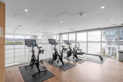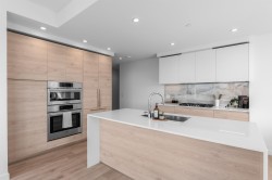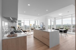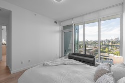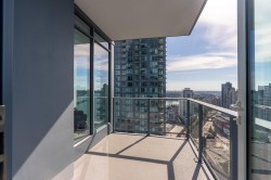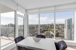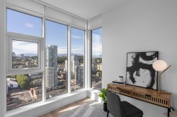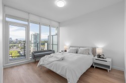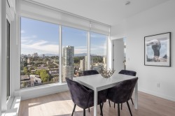 Experience life above it all at Pier West! Positioned on the 29th floor, this 1,025 sq ft two-bedroom, two-bath residence showcases expansive city and Fraser River views from every principal room. Floor-to-ceiling windows fill the open layout with natural light, while two private balconies provide generous outdoor space to enjoy sunsets and skyline views. The contemporary kitchen features integrated appliances and sleek cabinetry, flowing seamlessly into the living and dining areas. Includes EV parking - a valuable upgrade for modern urban living. Residents enjoy access to premium amenities including concierge service, fitness centre, sauna and steam rooms, private luxe dining space, and a panoramic social lounge. Waterfront location just steps to the boardwalk, River Market, and SkyTrain.