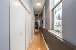 Industrial Conversion in the former New Westminster Post Office. Authentic to the core, you feel the exclusivity, history and energy reaching out to you from every room. Secluded at the back of the building, surrounded on three sides by wood-frame sash windows that stretch up the 12 foot ceilings. Inspiring, unique architecture that is truly one of a kind - especially with the original post office vault. Converted to residences in 2002, C2C Lofts was fully retrofitted and modernized. Each unit is unique and this one is the stand out. Extended like a peninsula, reaching across 1,241 square feet and leading you to the roof top deck. Take in the morning sun, step out your door for a coffee, a bite to eat and a short walk to the Skytrain.