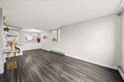 Welcome to Charter House, a well-managed concrete building in the heart of Uptown New Westminster, steps to transit, shopping, schools, parks, library, and recreation. This beautifully maintained 937 sq. ft. corner 2-bedroom, 1.5-bath home has been tastefully renovated with quality in mind, featuring a partially opened kitchen with extended cabinetry, quartz countertops, and updated bathrooms. Maintenance fees include heat and hot water, and the home comes with 1 parking and 1 locker, plus visitor parking. Major building upgrades include plumbing (2007), elevator (2014), roof (2018), and boilers (2021). No Pets Allowed.