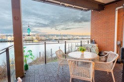 Waterfront living at its finest! This newly renovated 2 bedroom, 2 bathroom loft offers an open layout with stunning river views, 10-ft ceilings, and a large covered balcony for year-round enjoyment. Sliding glass door in living room fully opens! ALMOST $70K IN UPGRADES including a new heat pump with A/C, high end GE Monogram appliances, quartz counters, California Closet, white-oak hardwood floors, custom millwork, and a reclaimed brick accent wall and an EV Charging station in the parking spot. Steps from the Q2Q ferry to SkyTrain.
