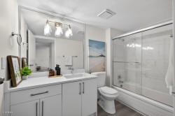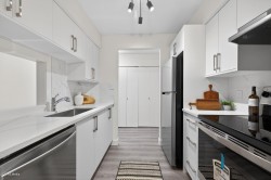 Best Value! FULLY RENOVATED + LOW STRATA FEE! Welcome to Fraser Mews - a beautifully updated 1 bedroom home offering modern finishes, a functional layout, and incredible value. Recent upgrades (2025) include new Kitchen cabinets, Quartz countertops, stainless steel appliances, Flooring, Paint, Lights, and Bathroom finishes. Spacious primary bedroom with shared ensuite, bright living area, and a private balcony perfect for relaxing and entertaining. Located on a quiet cul-de-sac steps to Queen’s Park, Aquatic Center, transit, schools, Royal Square Mall, and SkyTrain. Pet & Rental friendly building. Schedule a viewing today!