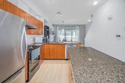 Welcome to this inviting 3-bed, 2-bath townhome, perfect for a growing family! Enjoy an open-concept design with energy-efficient Mysa thermostats and laminate flooring throughout. The spacious kitchen features granite countertops, a large island, and updated stainless steel appliances, including a fridge, dishwasher, and range hood. Step outside to a private fenced yard and covered deck for year-round enjoyment. Upstairs, find 3 generously sized bedrooms and 2 fully re-modelled bathrooms. The ground level offers a 1-car garage with a new opener and versatile den—perfect for a home office or gym. Conveniently located near schools, transit, the community centre, and more. Open House: 11/29 Saturday 12-2pm.