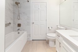 Situated in the heart of New Westminster, this exceptional one-bedroom and den residence boasts recent renovations, including quartz countertops, stainless steel appliances, and laminate flooring. Conveniently located near essential amenities such as groceries, parks, public transit, and entertainment, this meticulously maintained suite features an optimal layout. The spacious living and dining area seamlessly connects to the kitchen, while the bedroom offers direct access to the cheater ensuite. A large open den provides ample space for a home office. The residence includes 1 PARKING and 1 STORAGE. Contact your agent to book a private showing.