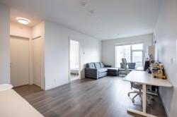 Capitol by Porte Homes, located in the vibrant core of Downtown New Westminster. This well-designed 2-bed, 2-bath home +1 den offers an open-concept layout based on the former display suite floor plan, featuring 9' ceilings, in-suite laundry, wide-plank laminate flooring, soft-close cabinetry, full-size stainless steel appliances, quartz counters, tile backsplash, and a spacious balcony. Just steps to the SkyTrain, shops, dining, schools, and parks. Enjoy modern comfort with a thoughtfully planned interior that maximizes every inch of space. Perfect for first-time buyers, downsizers, or investors looking for a quality home in a prime location