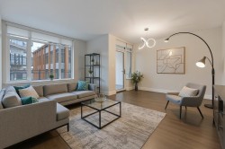 Welcome to The Columbia by Wesgroup—a beautifully, quiet, wellmaintained home offering 2 bedrooms and 2 bathrooms with a highly functional layout. The modern kitchen is equipped with stainless steel appliances, quartz countertops, a gas range, and ample cabinetry, making it perfect for everyday cooking and entertaining. Residents have exclusive access to Club Central, a worldclass 10,000+ sq. ft. indoor amenity centre featuring a full fitness facility, yoga studio, squash court, party room, treatment room, dance studio, and meeting rooms. Conveniently located close to everything New Westminster has to offer—the Brewery District, great restaurants, shops, and SkyTrain just steps away.