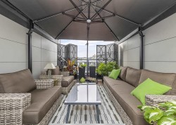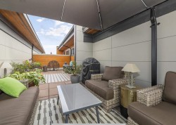Welcome to Portage at Port Royal, where space, style, and lifestyle come together. This rare 3 bedroom, 3 bathroom loft style home offers a bright open main level with two generously sized bedrooms, including a serene primary retreat with walk-in closet and ensuite. The chef inspired kitchen features a gas cooktop and built-in espresso machine, perfect for daily living and entertaining. Upstairs, the versatile loft includes a motorized privacy partition and ensuite, ideal as a third bedroom, media room, or guest suite. Enjoy an expansive private rooftop patio plus a second main level patio. Includes 2 parking stalls, storage locker, and ample in-home storage. Steps to the riverfront boardwalk, QtoQFerry, parks, schools, transit, restaurants, and Costco.