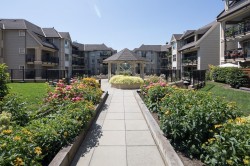 2 Large Dogs OK in your updated top floor one bedroom condo. This is a spacious covered balcony. The large living room has a gas fireplace and a nook for your computer / home office. There is easy to clean laminate flooring throughout. The kitchen has stainless appliances, granite counter tops and and breakfast bar. There is lots of space for dinner parties and you can easily have larger dining table. The master bedroom can fit a king sized bed and has a walk in closet. The cheater en-suite bathroom can be entered from the master bedroom or the foyer and features a larger soaker tub. 1 Secure Underground Parking, 1 Locker, bike room, gym, and beautifully landscaped garden courtyard. Bus Stop on 12th, steps to the New Westminster Quay, The Boardwalk, Shopping, Movie Theatres & SkyTrain.