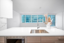 Welcome to Ovation in Downtown New Westminster. This 2-Level, 2 bedroom & den & 2.5 bath Townhome features wide-plank flooring, floor-to-ceiling windows, quartz counters & premium S/S appliances. Enjoy an expansive private patio, perfect for entertaining. Amenities include fitness center, garden, sauna/steam room & 24-hr concierge. Steps to shopping, dining, entertainment & SkyTrain.
