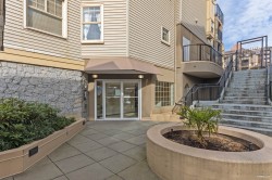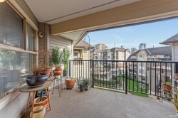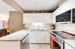 Discovery Reach by BOSA. This top floor, quiet courtyard facing pie-shaped extra large (728 sq.ft) one bedroom has been meticulously maintained and is in perfect mint condition. New S/S smart microwave/hood fan, oven, fridge and dishwasher. Updated fixtures and designer colours. Semi-ensuite provides both privacy and convenience. Large 8'3x13'4 S.E. facing balcony looks over the beautifully landscaped center garden. 2 pets allowed. One parking and storage. Club house, gym, visitor parking, pro-active strata and dedicated on-site caretakers. Steps to bus, Skytrain, New Westminster Quay & short drive to Metrotown, highways and much much more.