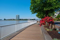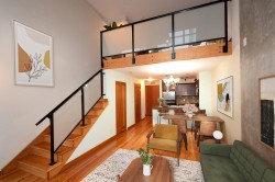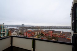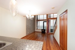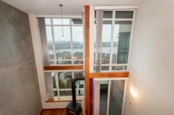 QUIET SIDE, VIEW UNIT in Murano Lofts! Enjoy spectacular sunsets and views of the Fraser River from inside & out! This 2 level home features 16' floor to ceiling windows, reclaimed fir floors, cozy gas fireplace, smart floor plan with great storage, nice balcony, 1.5 bathrooms & spacious kitchen featuring gas range & granite counters. The bedroom upstairs offers views, a walk-in closet, laundry & ensuite bathroom. One parking stall and insuite storage included. Quality concrete building with gym+ guest suite, 2 pets+ rentals allowed. Steps to the riverfront boardwalk, Quayside dog park, River Market, shops, restaurants & Skytrain that will take you from Vancouver to Surrey. The Quay epitomizes relaxed urban convenience! Open House Sat 2-4pm.