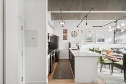 Discover a captivating NY style loft nestled in the vibrant heart of Uptown New West! Immerse yourself in the allure of this fully renovated gem, boasting lofty 11 ft ceilings that evoke a sense of grand openness. Brand-new kitchen seamlessly integrates with the living area, creating a perfect atmosphere for hosting. Updated bathroom and kitchen with new countertops, appliances, lighting, and laminate flooring. Features large windows, in-suite laundry, and walk-in closet for convenience. Well-maintained building with upgrades: exterior paint, plumbing, fire panel, secure mailboxes, and modern elevators. Rooftop deck for sunbathing and BBQs. Close to restaurants, shopping, transit, library, and Queens Park. Easy to show - don't miss out on this opportunity! Open House, Sun Feb 22 1-3 pm