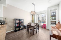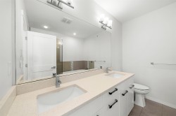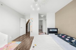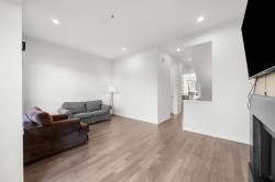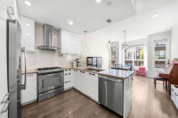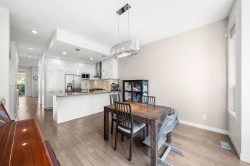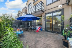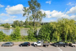 RIVERFRONT RETREAT! This bright and quiet 3-bed, 2.5-bath townhome (1,590 sq ft) in River’s Walk offers ideal indoor-outdoor living with a fenced yard on the riverfront greenway and a 356sq ft rooftop deck featuring a natural gas BBQ hook-up and river view. The main level boasts 9' ceilings, laminate hardwood floors, a gas fireplace, and stainless steel appliances. Upstairs, enjoy a king-sized primary retreat with 5-piece ensuite, two spacious bedrooms, and another full bath. Tandem garage plus driveway fits 3 vehicles. Quiet street near parks, schools, community centre, Q-to-Q ferry, and Queensborough Landing. Book your showing today!