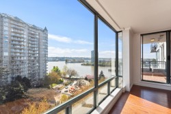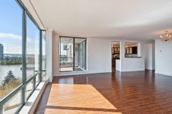 BEST VALUED UNIT at Excelsior! Unobstructed Fraser River views meet house-sized living. This 1,339 sq ft SE-facing corner condo features a bright, open layout with a gas fireplace, generous dining/living space, and a brand-new 2025 appliance package, including a stainless steel stove, whisper-quiet dishwasher, wine fridge, and new washer/dryer. Side-by-side bedrooms include a primary with double closets and a refreshed ensuite. Excelsior, a concrete waterfront tower, features an indoor pool, sauna, hot tub, library, and secure parking. Move-in ready with flexible dates, steps to the boardwalk, Quayside Park, River Market, and SkyTrain. Public Open House - Sunday, August 31st, 2-4 pm.