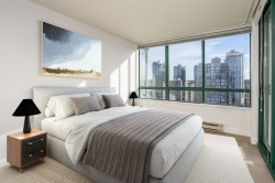 Located in the heart of New Westminster's Uptown area, in a Bosa built, well manage concrete building. Walking distance to shopping and sky train. This beautifully updated, open floor plan, 2 bedroom, 2 bath, plus den and separate laundry room home, features south west views of the Fraser River, engineered walnut floors, porcelain tile, wool carpets. The kitchen has granite counter tops, and large island with seating for four, Fisher & paykel, fridge, stove, hood fan and Miele dishwasher. Both stunning bathrooms have been beautifully renovated as well. There is one parking space and one large storage locker.