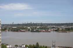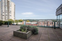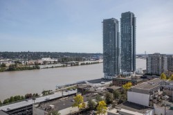 Incredible south-facing penthouse with stunning Fraser River views and 3 private balconies! This spacious 2 bed + den home features a bright open-concept layout, updated kitchen appliances, and new laminate flooring. The large den with gas fireplace offers flexible space or potential 3rd bedroom. Bedrooms are separated, with the primary featuring a full ensuite and brand new carpet. Enjoy resort-style amenities including an indoor pool, hot tub, gym, sauna, and rooftop terrace. Steps to shopping, dining, movie theatre, and direct SkyTrain access from the building’s underground parking!