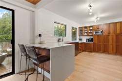 Welcome to 1166 Cloake Hill Road, a spacious 5 bedroom plus den, 3 bathroom home offering 2,600 sq. ft. of versatile living in desirable North Saanich with Ocean Views. The main level features a bright living room with wood floors, a separate dining area, & a beautifully updated kitchen with stainless steel appliances, waterfall quartz countertops, & ceramic tile backsplash. Three bedrooms & two bathrooms complete the upper level. The walk-out lower level offers excellent in-law potential with two additional bedrooms, a den, & a large family room with a cozy fireplace. The den downstairs has been plumbed & wired for a possible future kitchen. Set on a private, easy-care 0.68-acre lot, enjoy ocean glimpses & outdoor living on multiple tiered decks, plus a hot tub for year-round relaxation. Conveniently located close to ferries, the airport, Sidney, parks, & beaches, this home offers the perfect blend of privacy and lifestyle in a prime location.
