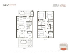 This refined 2-level townhome offers over 1,200 sqft of modern comfort with a beautifully efficient floor plan. Welcome to 1515 Rupert, a collection of brand-new, move-in ready 3-bedroom, 2.5-bath townhomes in the evolving Lynn Creek neighbourhood. Enjoy a sleek kitchen featuring Bosch & Fisher Paykel appliances, smart cabinetry, quartz counters and wide-plank flooring. Good size rooms and complemented by heated bathroom floors and A/C throughout for year-round comfort. A beautifully landscaped central courtyard, complete with a public art installation. The community is surrounded by nature's best-forested trails, parks, and riverside pathways-yet remains moments from urban essentials, shops, and the convenience of Phibbs Exchange.