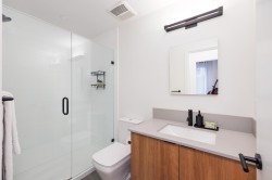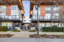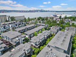 Welcome to Founders Block, a LEED Gold community by reputable developer Anthem Properties in the highly desirable Moodyville neighbourhood of North Vancouver. Arguably the nicest townhome in the complex, this exceptional south-west facing corner residence is flooded with natural light and positioned on the quiet side, offering panoramic city, water, and mountain views. This mint-condition 4-bedroom, 3-bath home features an open-concept layout with high ceilings, a stone island kitchen with gas range, radiant in-floor heating, office nook, upper laundry, oversized storage, a spa-like primary suite with walk-in closet and view deck, two secure parking stalls, and steps to Lower Lonsdale, the SeaBus, Moodyville Park, and The Shipyards.