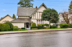 Welcome to the iconic “Kitchin” residence, a rare Tudor Revival home with Craftsman influence. Character-rich gables, half-timbering, mullioned windows, and a wrap-around veranda set the tone. Inside, 10-ft beamed ceilings, wainscoting, and heritage details blend with modern updates which includes wiring, plumbing, kitchen, baths, garage, furnace, hot water tank, carpets and fresh paint throughout. Centrally located near Lonsdale amenities, schools, greenbelts, and transportation.