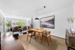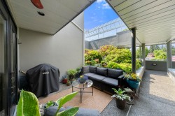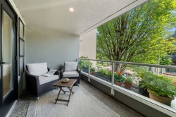 Edgemont living just steps off the Boulevard! Enter off the breezeway to be greeted by a lush, private patio, soaked in afternoon light. Step inside to find turnkey, single level living at it's best. The updated kitchen features an eating area with outdoor access, the bathrooms have been tastefully updated and both bedrooms are of generous size and on either end of the home for added privacy. The living and dining rooms are well proportioned and easily accommodate 'house sized' furnishings. Enjoy a green outlook through the large windows. The gas fireplace adds comfort, and a pleasant East facing deck rounds off this beautiful home. Unique layout with windows on both ends of the suite allows for extra light and a comfy breeze when needed. Bonus 2 parking! Easy living - just lock and leave.