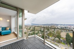 JUST REDUCED! Welcome to Beacon! Soaring on the 21st floor enjoy SOUTH-facing city and water views. This immaculate conditioned 1-BEDROOM + den/flex offers 602 sq.ft. of MODERN living with QUARTZ countertops, high-end Bosch and Fisher & Paykel s.s appliances and GAS cooktop. The endlessly BRIGHT living area opens to a PRIVATE balcony with a gas bib hookup. The versatile den can be used as an office or storage. Enjoy 3 elevators and TOP-TIER amenities, the 14,000sqft Denna Club offers a 25m indoor pool, 3,700sqft fitness room, sauna, steam room, yoga studio, and guest suite. Pet-friendly, with 1 parking spot and storage locker. Close to Lynn Creek, Seylynn Park, trails, and highways.