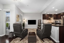 Here's a real gem! A super cool one-bedroom that makes a perfect starter or pied-à-terre. Air conditioned, concrete construction, in-suite laundry, granite countertops, stainless steel appliances, and a gas range. Take in city and harbour vistas, glowing sunsets, and the North Shore mountains. Step outside to a covered balcony with gas hookup—an ideal bonus living space. A good functional plan with no wasted space. Just one block away from the amenities of Central Lonsdale and minutes to all things Lower Lonsdale, including the Seabus. One parking stall, ample storage, pet-friendly, wheelchair accessible, proactive strata & healthy CRF. Comfortable, central, and cool—even on those sticky summer days. Pets OK w/ some restrictions. Open House Sat. 2-4