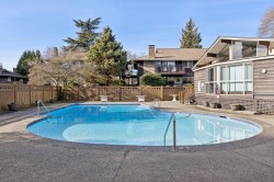 Rarely available top-floor 3 bed, 2 bath residence in Cedarbrooke Village, North Van. Bright south-facing patio overlooking lush, manicured green space, offering privacy & a serene outlook. Renovated kitchen with SS appliances, gas F/P & in-suite laundry. Spacious, functional layout filled with natural light. Extra-large primary bedroom with ensuite. Single-level living with a private exterior front door gives this home true townhome-style appeal. Well-managed complex with beautifully maintained grounds & outdoor pool—perfect for summer staycations. Steps to schools, shopping, rec centre & transit. Easy commuter access & minutes to Grouse Mtn trails & skiing.