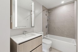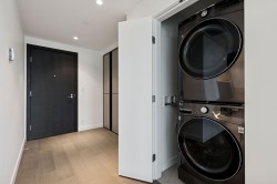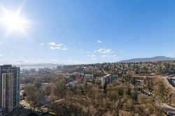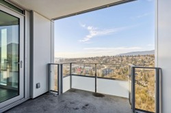 Privacy, views & space define this impressive 2-bed home overlooking a park with water, mountain, & Downtown Vancouver views. The well-designed layout offers a spacious primary bedroom w/ ensuite & walk-through closet, plus a 2nd bedroom w/ walk-in-closet. Enjoy TWO covered patios w/ a rare unobstructed outlook & gas hook up. The home features an upgraded Gaggenau appliance package, floor-to-ceiling triple glazed windows, elevated ceiling heights, heated tile bathroom floors, & A/C. The EXTRAS truly set this home apart: 2 parking stalls, incl. 1 EV-ready, a motorcycle stall, a private storage ROOM, an additional storage locker, and TWO bike lockers. Benefits include concierge, a guest suite, and access to Denna Club amenities (fitness centre, indoor pool, hot tub, steam, sauna, and more)!