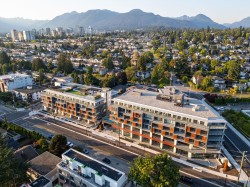 New condo offers tasteful, modern design, premium finishes, and an unbeatable location! Bright open-concept layout in a concrete building features floor-to-ceiling windows, quality wide-plank flooring and a sleek kitchen with quartz counters, integrated appliances and ample designated storage. Enjoy your private balcony and the resident-exclusive amenities including 8,000sqft roof top terrace, community gardens, BBQ areas, play spaces, indoor lounge, party/media room, bike room and an easy dog wash station. All just steps to the Spirit Trail, Shipyards District, Sea Bus, shops, cafes and dining. Home comes with separate storage, one parking and there is visitor parking too. The perfect blend of style, comfort & convenience! OPEN SUNDAY FEB 15TH 2PM-4PM.