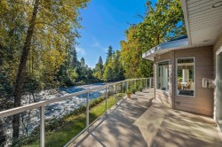 One-of-a-kind riverfront estate on a nearly 23,000 sq ft lot with rare frontage on the Seymour River. This exceptional property offers unmatched privacy, space, and natural beauty in a truly park-like setting. The two-level home is designed to capture the views with sun-drenched living areas, expansive windows, and multiple decks and patios for seamless indoor-outdoor living. A long private driveway winds through manicured grounds to this secluded riverside retreat—perfect for families, entertaining, and everyday escape. Bonus: a self-contained 2-bedroom above-ground suite with its own garage, ideal for in-laws or rental income. Potential for subdivision or a future coach house. Rarely do properties of this scale and setting come to market, this property is a true North Shore treasure.