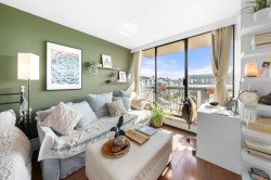 Very inviting sun filled open plan studio condo with spectacular Southeast water views to enjoy from your own balcony (40 sq. ft.). Bright & airy light & modern colour scheme kitchen with eating area. Spacious updated 4 piece bath, large and high closets offers great storage. Easy care laminate flooring. Ideally situated with just a quick stroll to the vibrant Shipyards District, cafes, restaurants, shops, Brewery Row, Spirit Trail & Sea Bus. Well maintained concrete building has an array of amenities, fitness center, sauna, large hobby room, meeting room, huge laundry, bike storage and guest suite. Includes 1 parking & 1 storage locker. One dog, up to two cats. Excellent location!