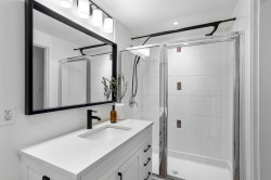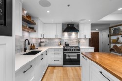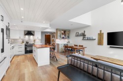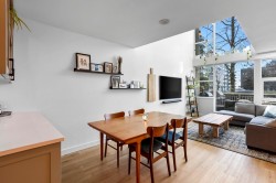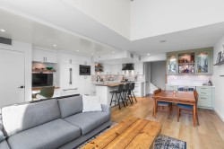 A stunning & fully renovated 2 bed, 2.5 bath townhome at Esplanade West. Offering over 1100 sq ft across two levels, this home features integrated Fisher Paykel appliances, a custom wet bar, and a thoughtfully designed office nook. Classic wainscotting and shiplap details add warmth and character throughout. Also includes air conditioning, gas range, double height ceilings in the living area, a generous patio on the main level, and a balcony off the primary. Rare live/work zoning with the option to secure access to Pinnacle Hotel amenities. Steps to the Shipyards, Lonsdale Quay, and an incredible selection of restaurants, shops, and breweries. Pet friendly building. 1 parking & 1 storage. OPEN WED Feb 11th 10am-12PM & SUN Feb 15th, 2-3:30pm.