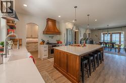 Perched just on the edge of town on Osoyoos’s coveted East Bench, this Modern Farmhouse estate isn’t just a home — it’s your dream lifestyle in the making. Spanning nearly 4.5 acres, with panoramic views of Osoyoos Lake and the sun-drenched South Okanagan hillsides, every moment here feels like a postcard. Wake up to the soft glow of sunrise over the vineyards and unwind each evening with a glass of wine as the lake reflects the colours of the setting sun from your wrap around porch. Inside, nearly 4,000 sq ft of beautifully crafted living space awaits. The heart of the home is a designer chef’s kitchen with premium appliances, an oversized island, and a walk-in pantry — perfect for entertaining or everyday luxury. The main floor also features a warm and inviting living area with gas fireplace, a spacious dining room, and a serene primary suite built for ultimate relaxation. The lower level delivers space and flexibility with three additional bedrooms, a large family/games room, and a multi-purpose flex space. Outside, the opportunities are endless — whether you're dreaming of a pool, a private vineyard, or wide-open space to enjoy nature. For the hobbyist or entrepreneur, a brand-new 44x30 heated shop with RV-height doors and high-amperage power offers serious function. There's also an attached 3-car garage, plenty of extra parking, and a fully irrigated, deer-fenced raised garden complete with potting shed. Come see it for yourself — showings by appointment. (id:27)