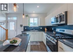 Welcome to this wonderful, newer half duplex that boasts a fully fenced West-facing yard, two off-street parking stalls in the back lane, central air conditioning, gas stove, stainless steel appliances, big/bright windows. Centrally located within walking distance to the hospital, schools, Penticton Creek, parks, IGA, and the downtown amenities. The main floor offers a large, open floor plan complete with kitchen/ dining / living room and convenient 2-piece bath. The upstairs is comprised of 3 bedrooms, 2 bathrooms and conveniently located stackable laundry. The master bedroom comfortably has room for a King size bedroom set, walk in closet, and 3-piece bath. The basement has been recently renovated and is fully finished with laminate floors, large family room, and a bright 4th bedroom with a large new engineered window. Further electrical and water lines are roughed-in for the installation of a possible 2-piece bathroom. There is also a cozy fenced back yard with natural gas BBQ connection and garden shed. NO STRATA FEES. (id:27)