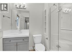 Bright and updated three level townhouse in a central Penticton location. The entry level offers a single car garage with driveway parking, a versatile third bedroom or rec room, a three piece bathroom, and access to a peaceful ground floor patio and landscaped sitting area, perfect for enjoying the morning sun. The main level features high ceilings and large windows that create an airy, light filled atmosphere rarely found in a townhouse. Newer vinyl plank flooring, quartz countertops, renovated bathrooms, and a functional kitchen layout complement the spacious dining area, which opens to a private deck ideal for BBQs and entertaining. In suite laundry, extra storage, and a convenient two piece bath complete this level. Upstairs includes a generous primary bedroom with walk in closet and ensuite access to a four piece Jack and Jill bathroom, plus a second well sized bedroom providing flexibility for children, guests, or a home office. All ages welcome, with one dog and one cat permitted. Conveniently located near shopping, schools, and Skaha Lake, this well maintained home is perfect for first time buyers, growing families, or anyone seeking a comfortable, manageable, and modern living space. Enjoy the combination of privacy, updates, and everyday convenience in a friendly, sought after community. (id:27)